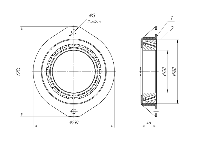 The housing bearing unit (UCFL24P) consists of a flanged housing with an oval flange (FL24P) made of polypropylene (PP), which fixes the bearing with a tight fit and a bearing itself. The support surface is strictly perpendicular to the axis of rotation of the bearing. The housing is polypropylene, the bearing is steel.
