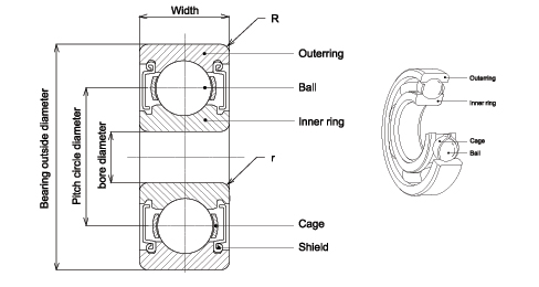 Note: The above bearing construction drawing only lists one type of inner ring construction, which usually is applied in EMQ quality bearings, But there are other tow types of inner ring constructions are applied in Farton Mitex & CTK open,shielded and sealed deep groove ball bearings as below chart.