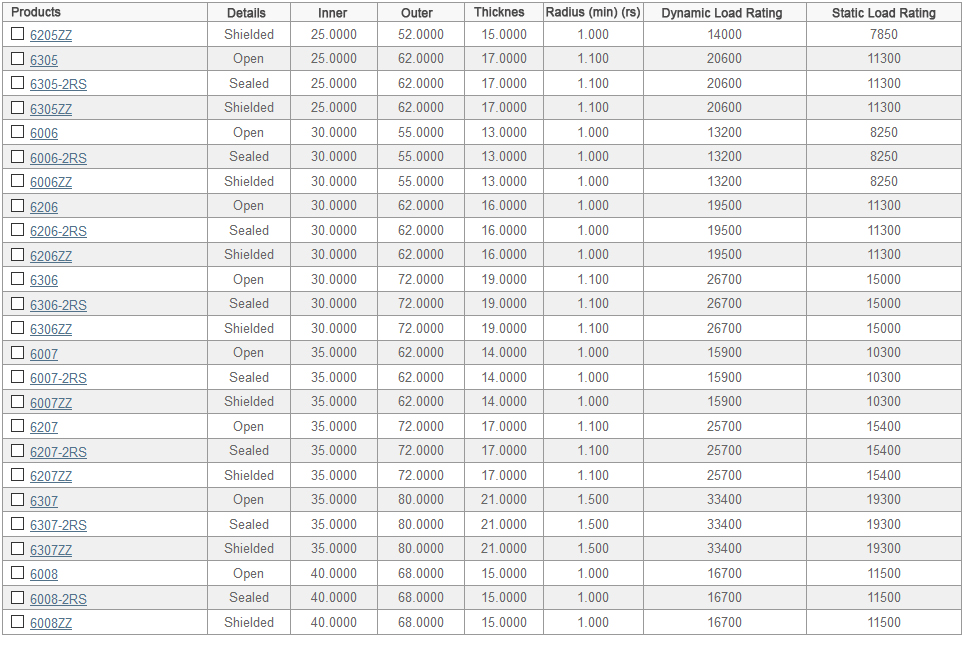 Single Row Ball Bearings