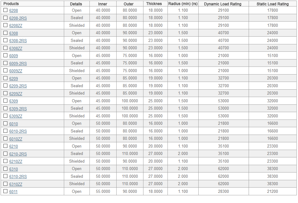 Single Row Ball Bearings