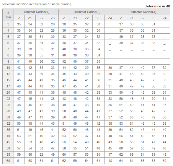 The vibration and noise of bearings are classified as four classed as Z1,Z2,Z3 and Z4.It is measured by the instrument of S0910-1,For special requirement,it is measured by BVT-1 and classified as V1, V2, V3 and V4.The data are shown as below. Customer need mark their requirement of vibration and noise class on the order. RETAINERS-Farton Mitex & CTK standard bearing retainers are made from cold rolled carbon steel however, in cases of corrosive environment, misalignment,or high speed operation, stainless steel, or phenolic resins will be used upon request.